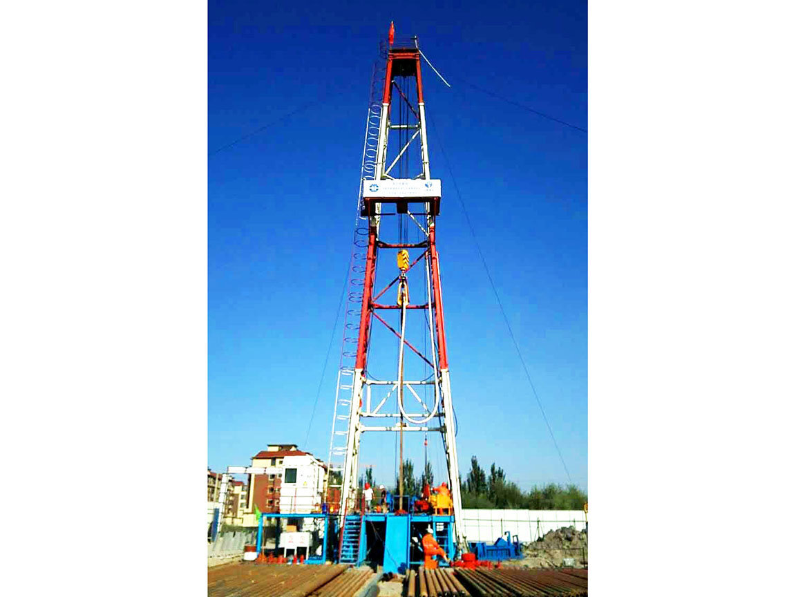 In September 2017, the new well 1 well, Wensu County, Shandong Province, was drilled by the third geological and Mineral Exploration Institute of Xinjiang province. The XD-40DB/P type electric top drive rotary drilling rig developed by Zhong Zhuang Group Co., Ltd. is used in the project. This type of driller adopts frequency conversion electric drive technology to realize digital control, display and monitoring. According to the need of drilling technology, it can be used as an independent electric frequency conversion top drive drill or as an electric frequency converter drill. It mainly includes seven components, such as the main components of the variable frequency main winch (including the automatic drilling device), the top drive system, the turntable system, the mud pump, the independent driller room, the general electric control room and the drill tower. It has realized a variety of functions, and can better meet the oil and gas investigation wells, the parameter wells, the geothermal wells, the water wells and the shallow well oil wells. The requirement of caliber drilling is the first choice for geological prospecting units to cross boundary transformation of unconventional oil and gas exploration.
